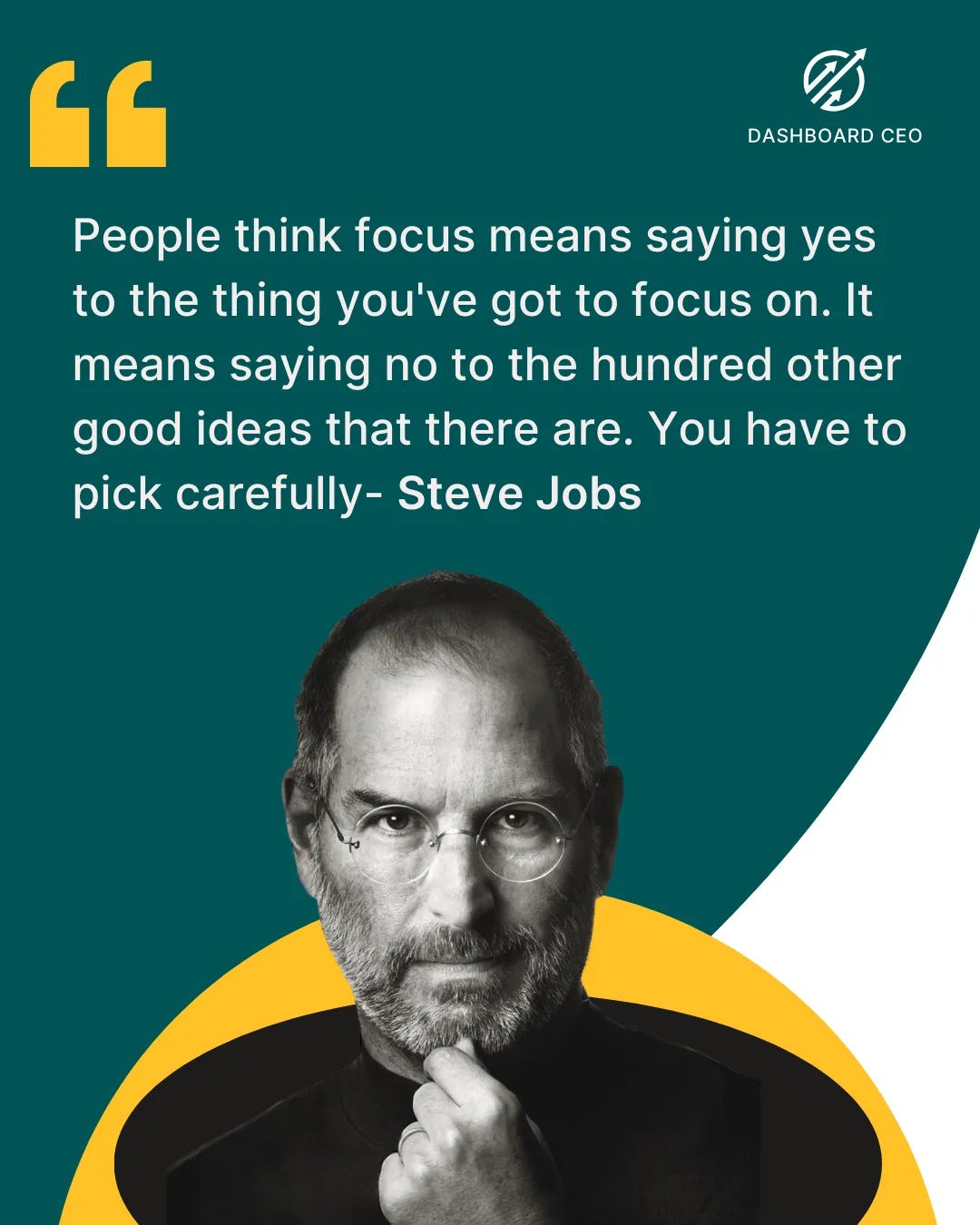 “People think focus means saying yes to the thing you’ve got to focus on. It means saying no to the hundred other good ideas that there are. You have to pick carefully.” - Steve Jobs